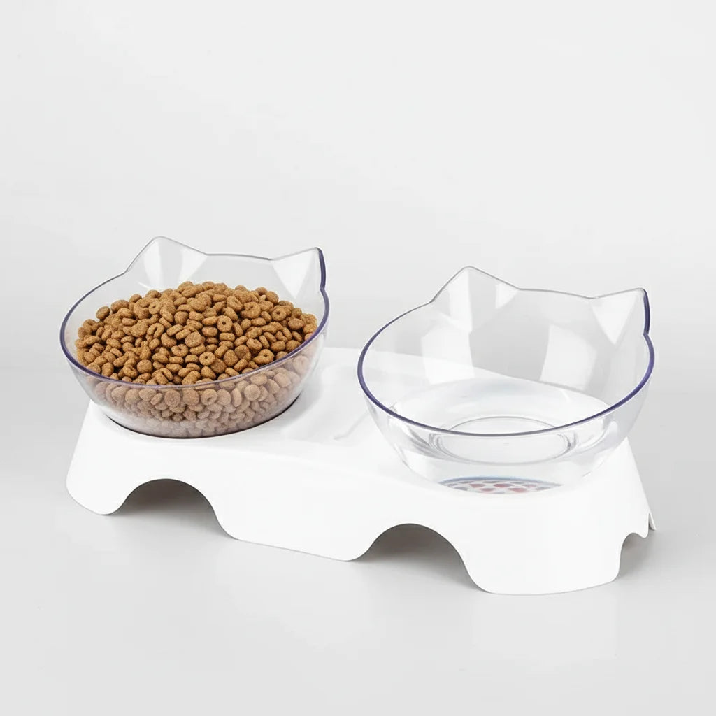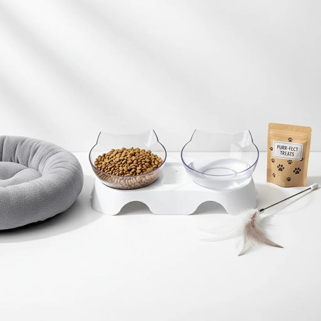 An elevated, angled double-bowl feeder that supports healthy digestion and posture. Designed to reduce vomiting, whisker fatigue, and joint strain — perfect for cats of all ages.